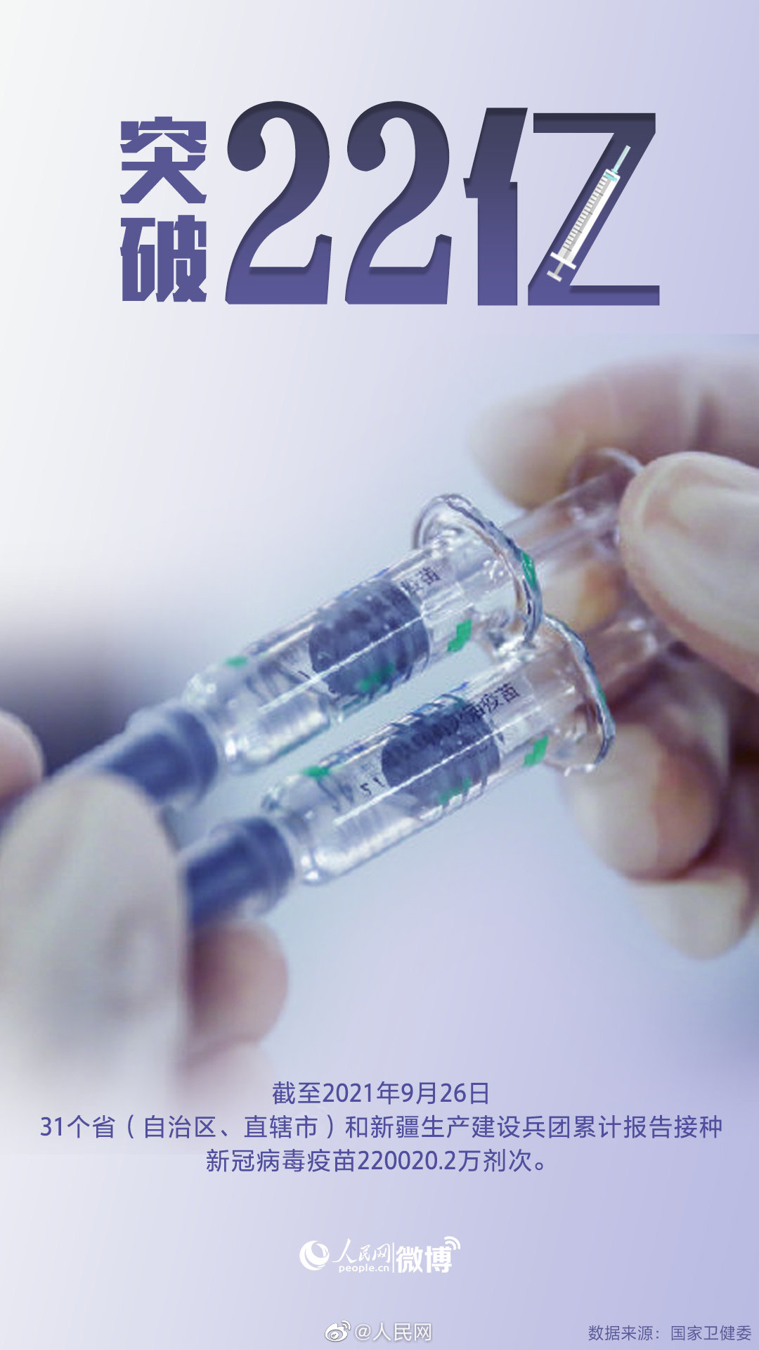 2021-09-27 16:15:13閱讀()人民網(wǎng)9月27日消息根據(jù)國家衛(wèi)健委數(shù)據(jù):截至2021年9月26日,31個(gè)省(自治區(qū)、直轄市)和新疆生產(chǎn)建設(shè)兵團(tuán)累計(jì)報(bào)告接種新冠病毒疫苗220020.2萬劑次。