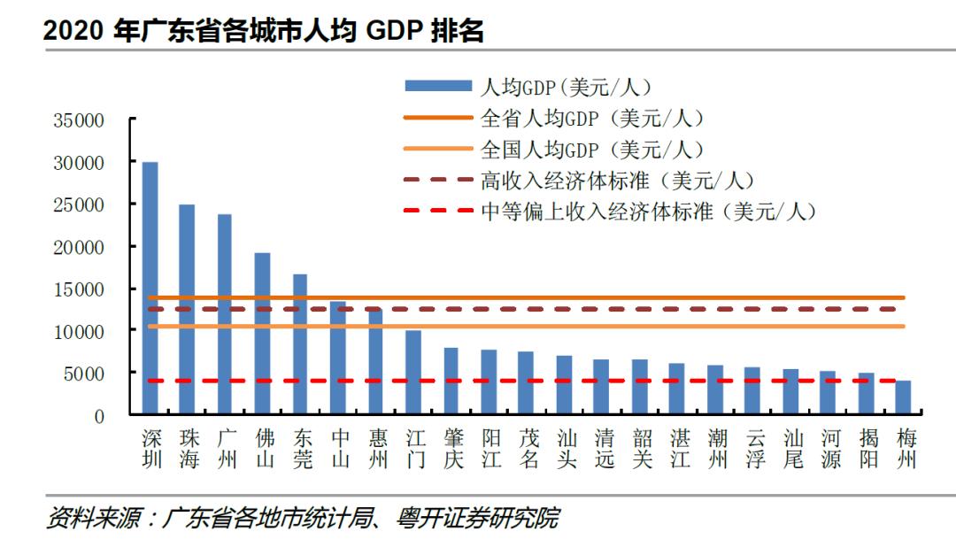 不過,隨著國際疫情形勢變化,外貿(mào)將會受到一定挑戰(zhàn),高增長態(tài)勢難以持續(xù),主要外貿(mào)城市發(fā)展或會受到影響。2020年以來,雖然全球疫情形勢日益嚴(yán)峻,但由于我國迅速遏制疫情擴散,供應(yīng)鏈體系得以迅速恢復(fù),借助強大的工業(yè)體系,我國外貿(mào)進(jìn)出口在疫情期間逆勢擴張,對于穩(wěn)經(jīng)濟發(fā)揮了關(guān)鍵作用。不過,正如官方有關(guān)人士所分析的:“當(dāng)前全球疫情起伏反復(fù),外部環(huán)境更趨復(fù)雜嚴(yán)峻和不確定,我國經(jīng)濟率先恢復(fù)的相對優(yōu)勢和基數(shù)效應(yīng)可能減弱,2022年我國外貿(mào)發(fā)展面臨的不確定不穩(wěn)定不均衡因素增多”。所以,如何穩(wěn)外貿(mào),是擺在所有外貿(mào)大省面前的一道考題。07廣東并非沒有短板。據(jù)《》一書分析,廣東雖然經(jīng)濟發(fā)展強勁,但區(qū)域發(fā)展并不均衡:既有富裕程度遙遙領(lǐng)先的珠三角,也有相對不發(fā)達(dá)的粵東西北。廣東下轄21個地市,雖然深圳、珠海、廣州人均GDP位居全國前列,但還有2/3的地市人均GDP低于全國平均水平,最低的梅州,人均GDP僅為3.1萬元,不到深圳的1/5。