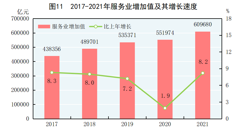 [17]戰(zhàn)略性新興服務(wù)業(yè)包括新一代信息技術(shù)產(chǎn)業(yè)、高端裝備制造產(chǎn)業(yè)、新材料產(chǎn)業(yè)、生物產(chǎn)業(yè)、新能源汽車產(chǎn)業(yè)、新能源產(chǎn)業(yè)、節(jié)能環(huán)保產(chǎn)業(yè)和數(shù)字創(chuàng)意產(chǎn)業(yè)等八大產(chǎn)業(yè)中的服務(wù)業(yè)相關(guān)行業(yè),以及新技術(shù)與創(chuàng)新創(chuàng)業(yè)等相關(guān)服務(wù)業(yè)。2021年戰(zhàn)略性新興服務(wù)業(yè)企業(yè)營(yíng)業(yè)收入增速按可比口徑計(jì)算。