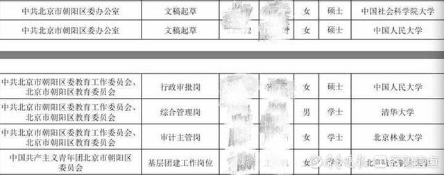 4月8日和12日,北京市朝陽區(qū)人民政府網(wǎng)站分別公示了131名和77名公務(wù)員擬錄用人員名單。公示信息顯示,不少擬錄用人員來自海內(nèi)外名校,包括清華大學(xué)、北京大學(xué)、中國政法大學(xué)、外交學(xué)院、北京師范大學(xué)、澳門大學(xué)、帝國理工學(xué)院、荷蘭阿姆斯特丹大學(xué)等。