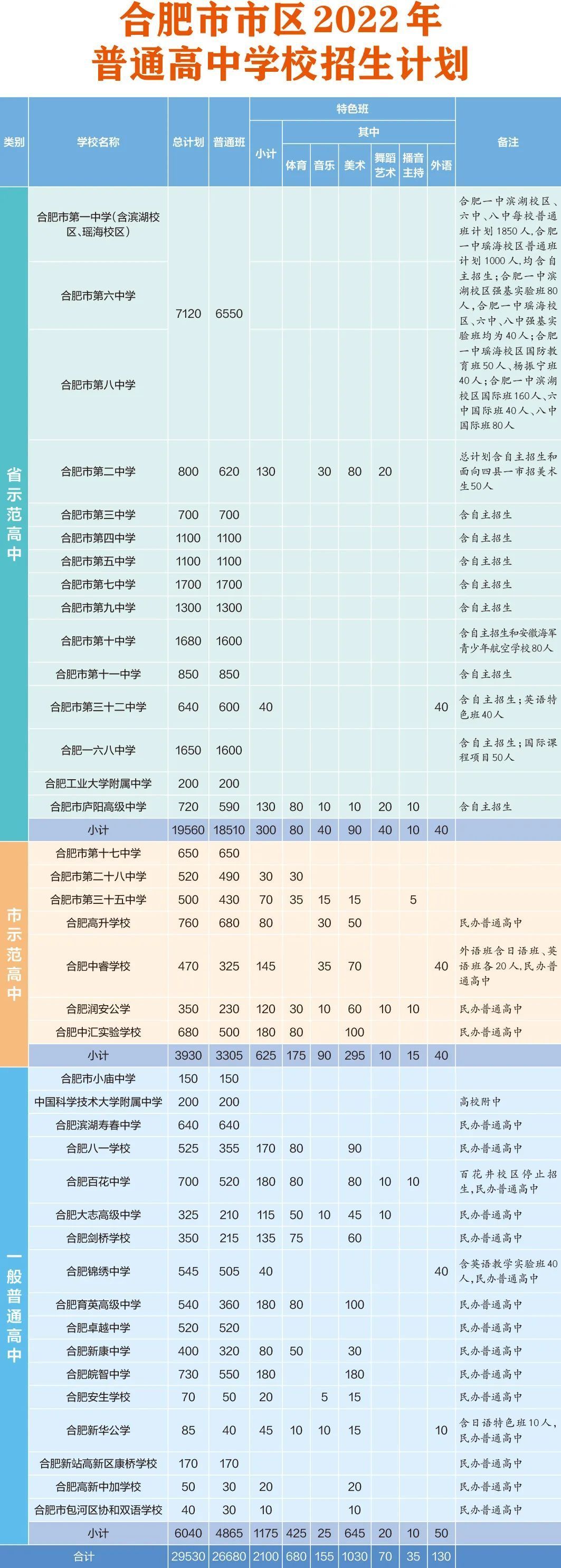 2022-06-18 09:14:22閱讀()合肥市教育局據(jù)合肥市教育局發(fā)布消息,6月17日,2022年合肥市區(qū)省示范高中指標(biāo)到校生計劃公布。
