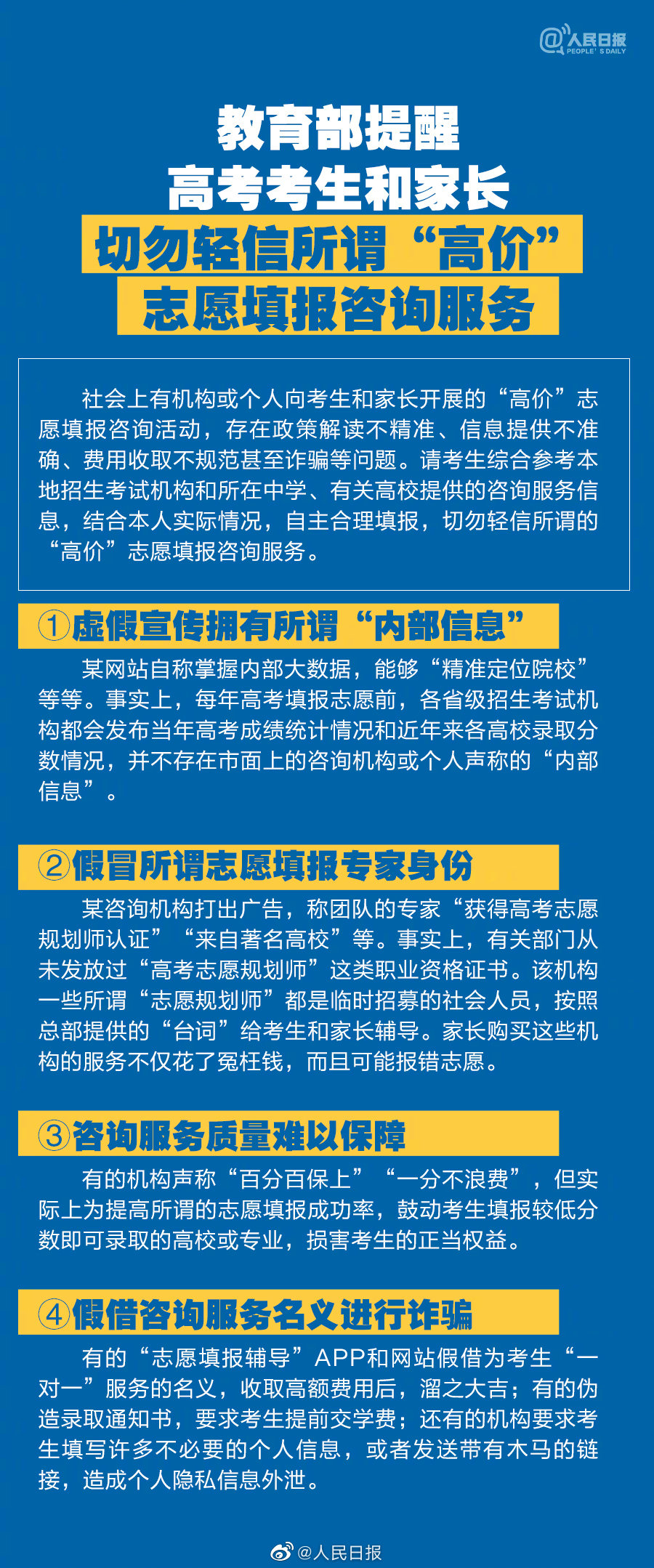 教育部發(fā)布志愿填報預警:勿信所謂高價志愿填報咨詢服務