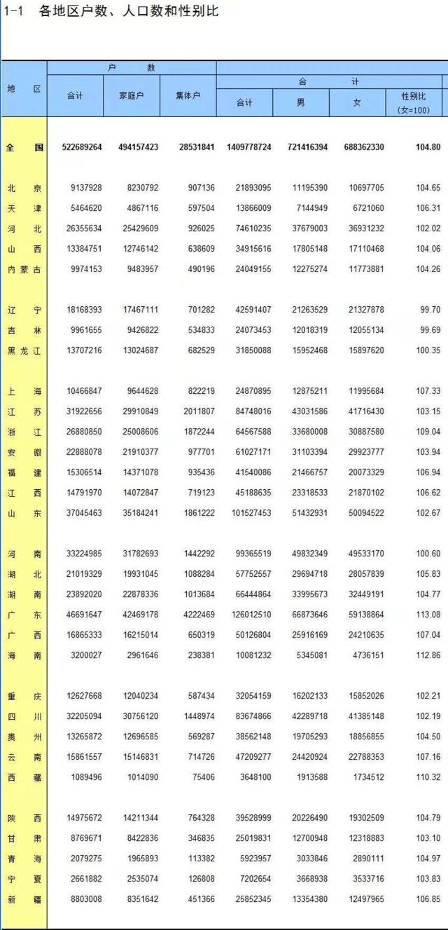 《中國(guó)人口普查年鑒-2020》顯示, 廣東總?cè)丝谛詣e比最高,達(dá)到了113.08,在110以上。