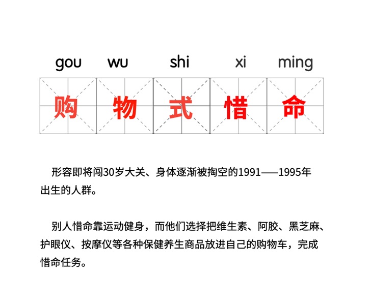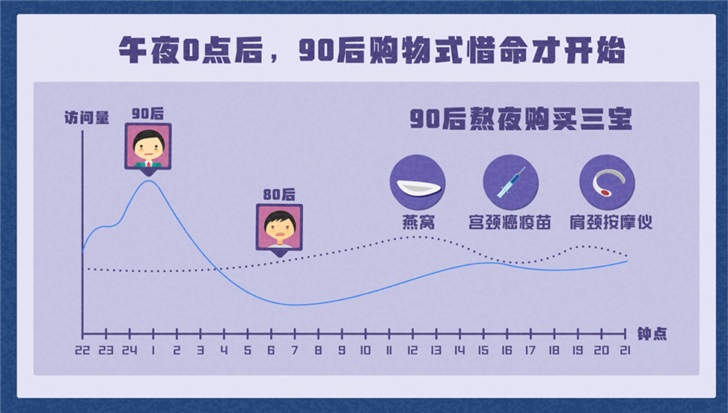 不過,這屆90后怕死又作死,一邊“敷著最貴的面膜,吃著最貴的保健品”,一邊“熬著最晚的夜”。數(shù)據(jù)顯示,90后買養(yǎng)生產(chǎn)品的高峰時間是每天的12點以后。
