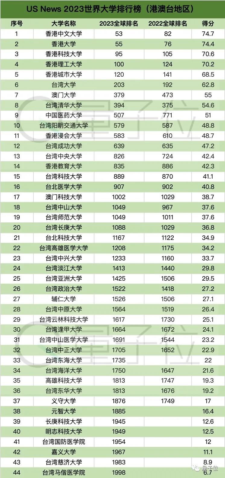 不過在今年發(fā)布的US News世界大學排行榜中,還是能夠看到它們的身影。