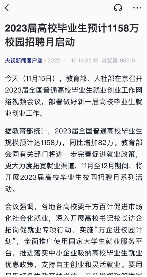 2023屆高校畢業(yè)生人數(shù)1158萬人,同比增加82萬人