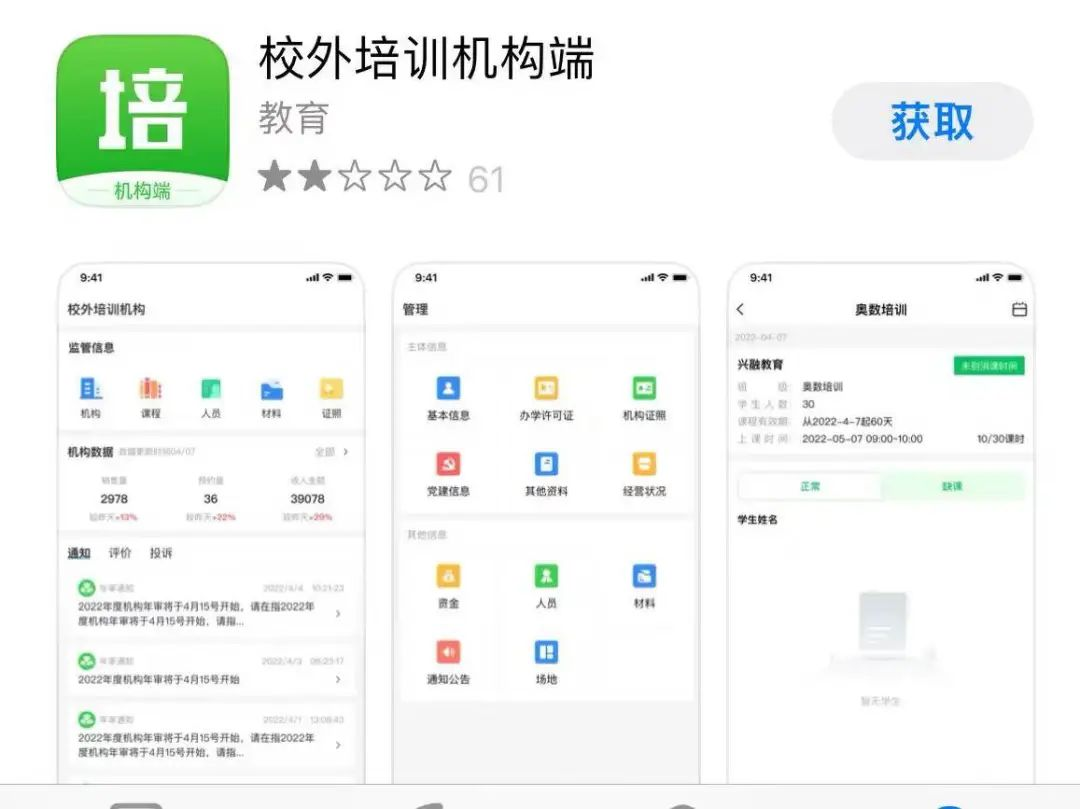 而針對線下教育培訓機構,教育部旗下中央電化教育館還推出了“校外培訓機構端”App,支撐落實備案審批制度。同時,還推出了“校外培訓管理端”App,形成教育培訓監(jiān)管與服務的App矩陣。