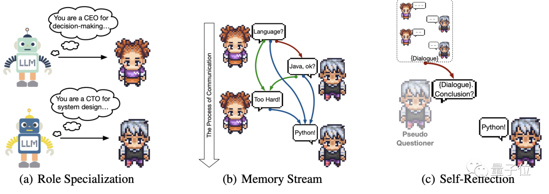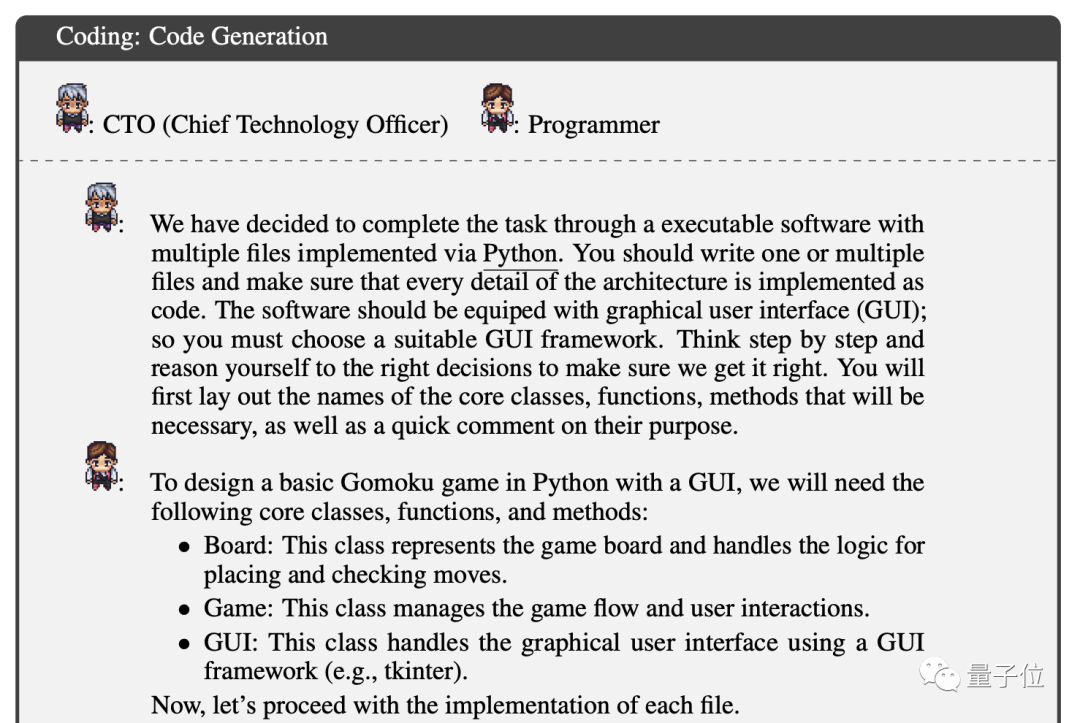 在「公司」中,十多個(gè)聊天機(jī)器人分別扮演著不同的角色,串聯(lián)在一起完成開發(fā)工作。