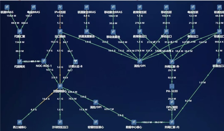 據(jù)介紹,曾經(jīng),北郵坐擁教育網(wǎng)、電信、聯(lián)通、移動(dòng)四大出口,不過四大出口加起來的帶寬也只有7Gbps左右。為此北郵一口氣將帶寬提高到了40Gbps!并調(diào)整其他出口流量,統(tǒng)一使用一家運(yùn)營商帶寬。根據(jù)測試數(shù)據(jù),無線網(wǎng)覆蓋更加全面,總流量峰值達(dá)到了33Gbps。