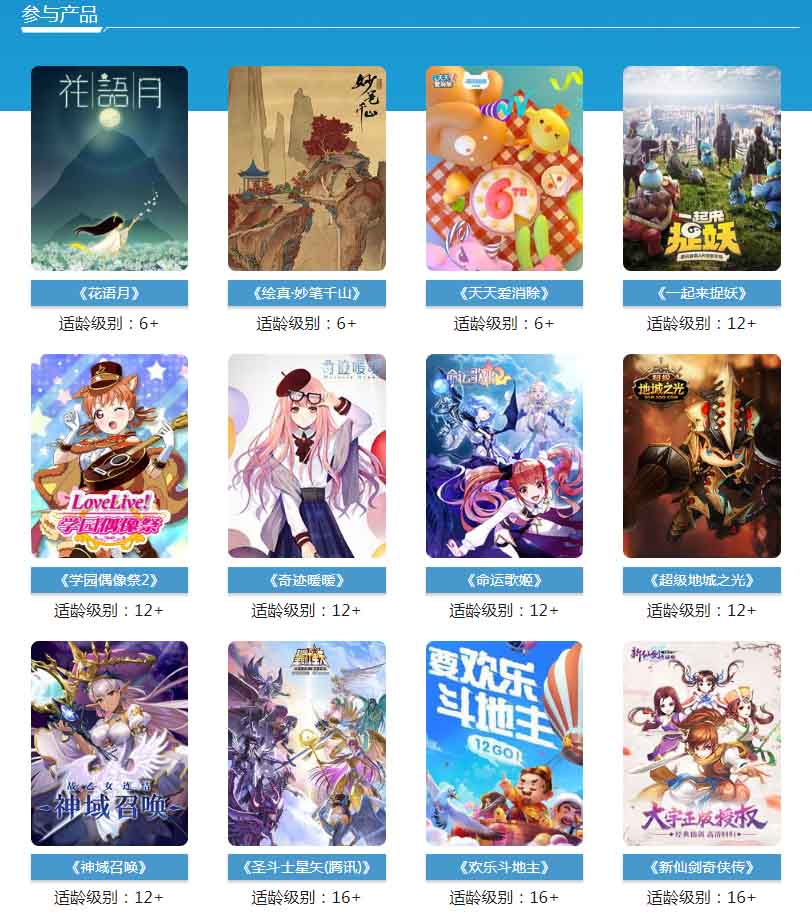 人民網(wǎng)游戲適齡提示平臺公布了第二批34款參與適齡提示的游戲產(chǎn)品。至此,已有共計55款產(chǎn)品標(biāo)記了相對應(yīng)的適齡提示級別。本次參與的游戲產(chǎn)品 ...