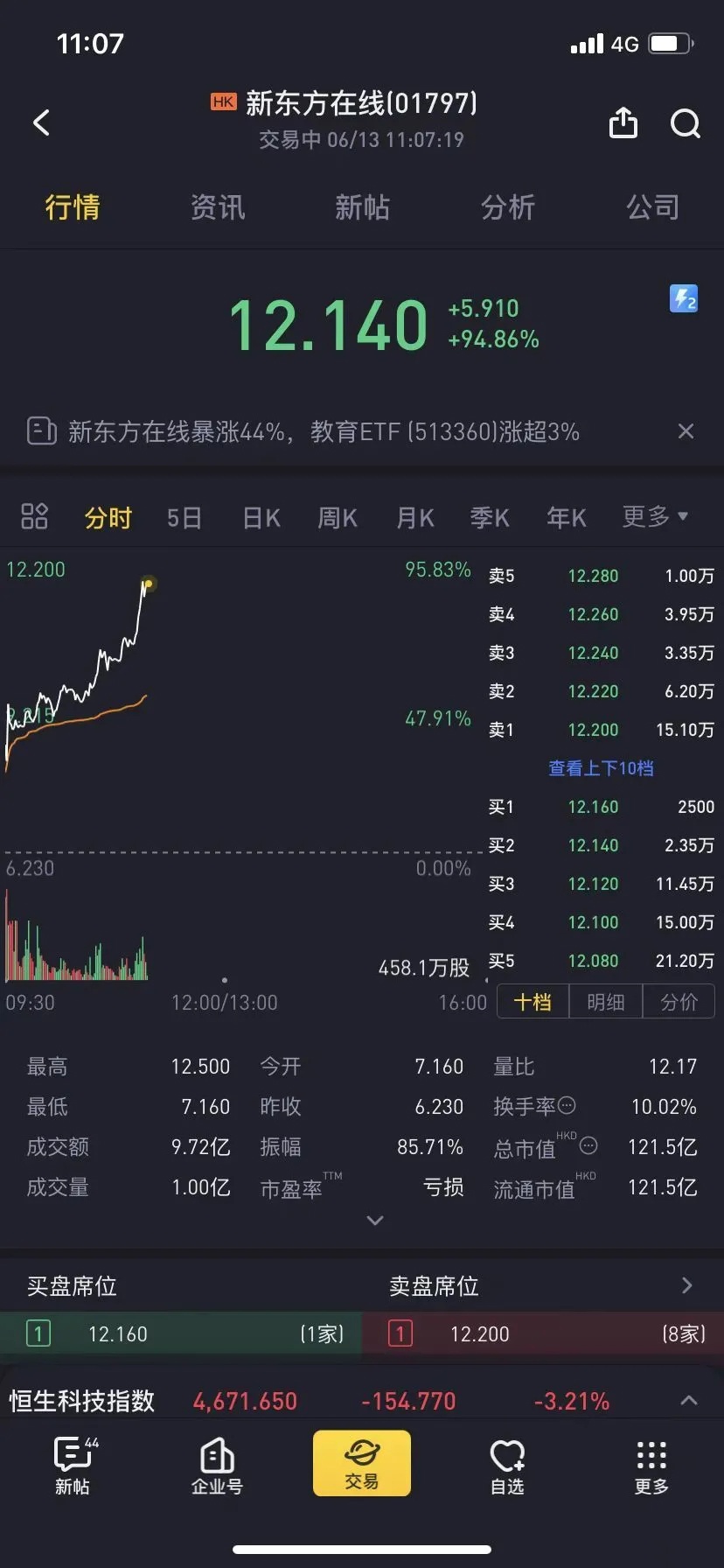 新東方直播帶貨周末成為市場最關注的話題,新東方主播突然成熱門搜索,新東方在線(01797 HK)6月13日開盤后出現(xiàn)暴漲,盤中漲幅逼近100%,截 ...