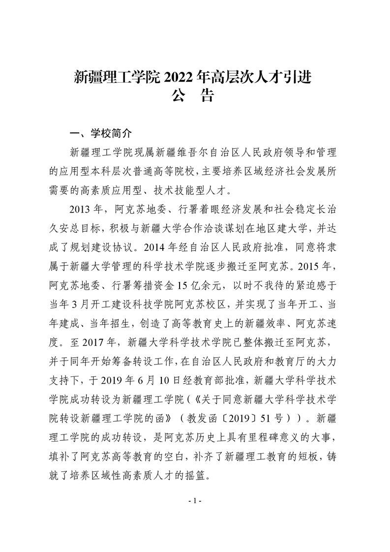 2022年新疆理工學(xué)院引進(jìn)高層次人才公告