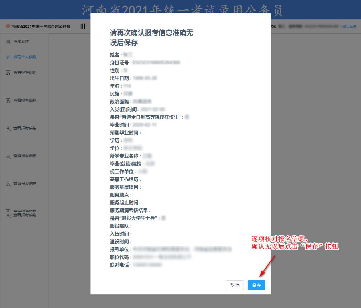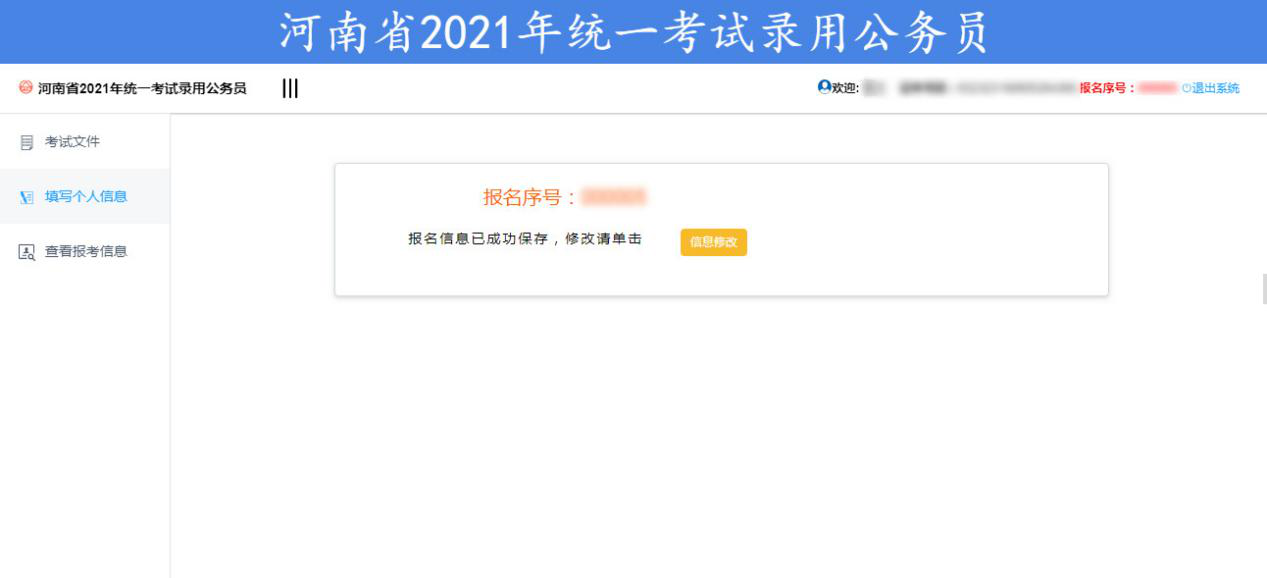 逐項(xiàng)核對(duì)報(bào)名信息,確認(rèn)無(wú)誤后點(diǎn)擊“保存”按鈕,彈出如下頁(yè)面,至此保存成功。