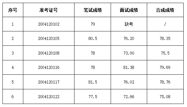 根據(jù)《含山縣應(yīng)急管理局公開招聘政府購買服務(wù)工作人員公告》要求,現(xiàn)將本次面試成績與筆試成績按照5:5的比例進(jìn)行合成,合成成績公示如下,公示期限5天, 自2020年4月20日至2020年4月24日。如有異議,請來電反映。