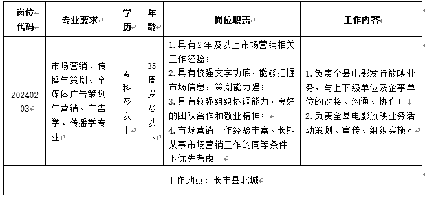 4.長豐縣電影發(fā)行放映公司有權(quán)根據(jù)崗位需求變化及簡歷投遞情況等因素,調(diào)整、取消或終止個別崗位,本次招聘最終解釋權(quán)歸長豐縣電影發(fā)行放映公司所有。