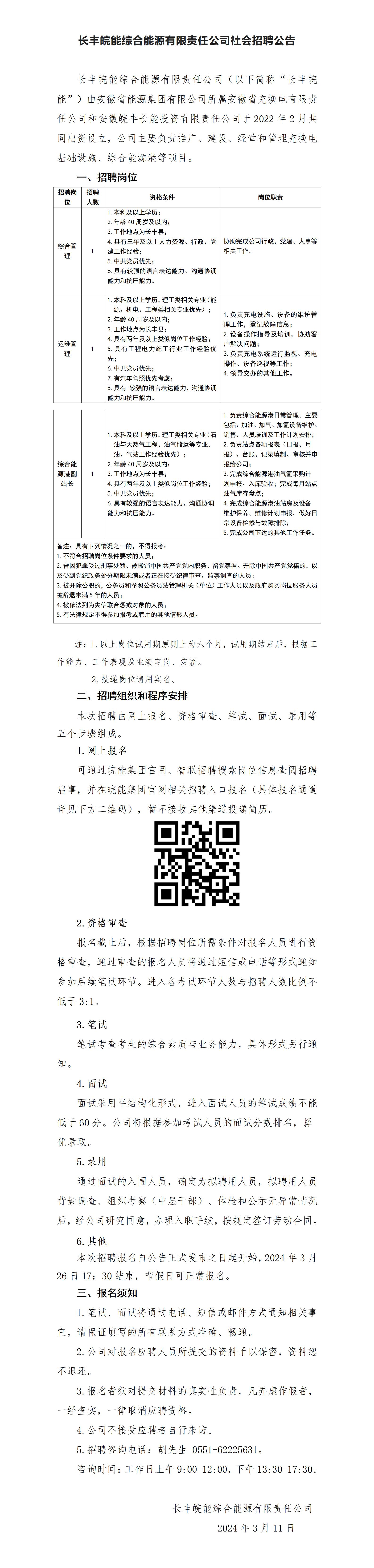 2024年合肥長(zhǎng)豐皖能綜合能源有限責(zé)任公司社會(huì)招聘公告