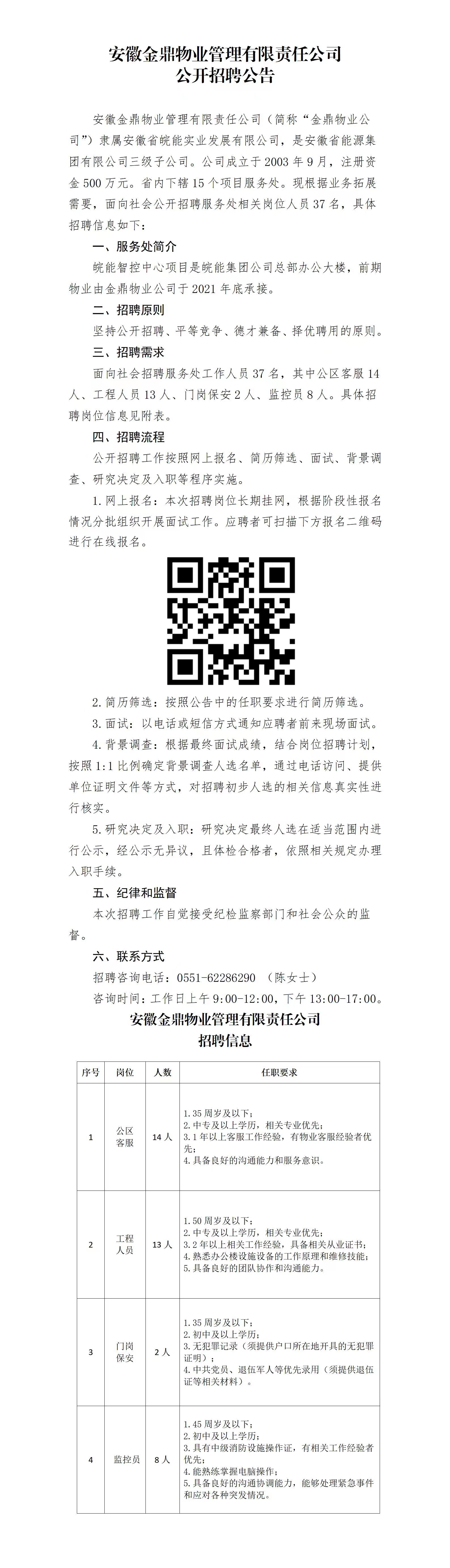 2024年安徽金鼎物業(yè)管理有限責(zé)任公司公開招聘公告