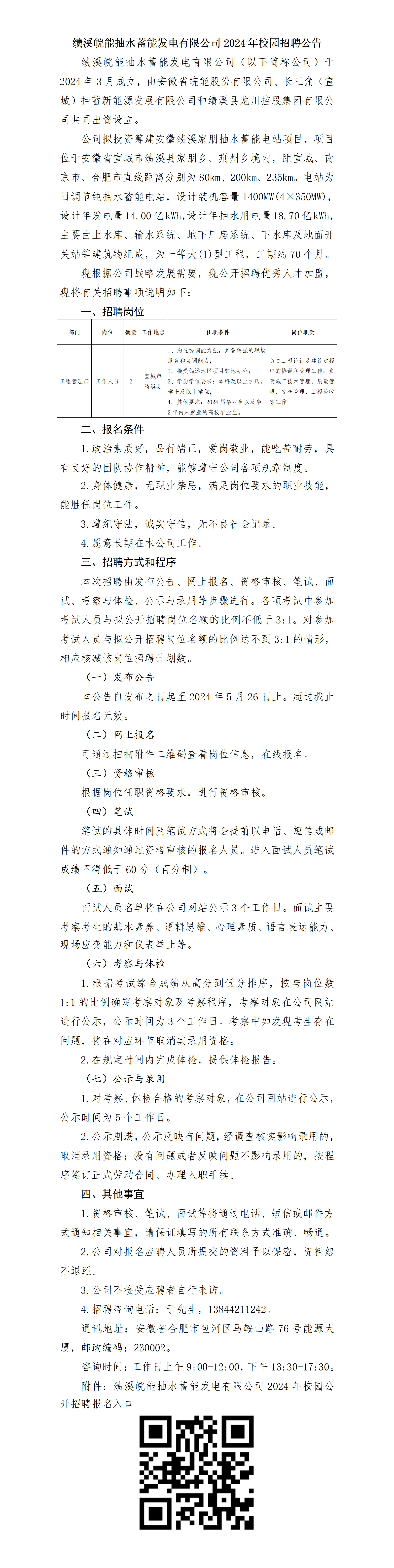 2024年宣城績溪皖能抽水蓄能發(fā)電有限公司校園招聘公告