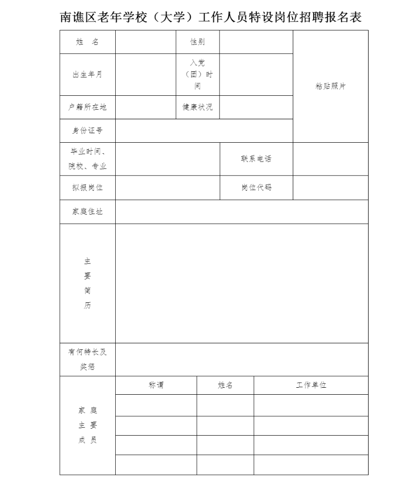 附件:1.南譙區(qū)老年學校(大學)工作人員特設崗位招聘報名表