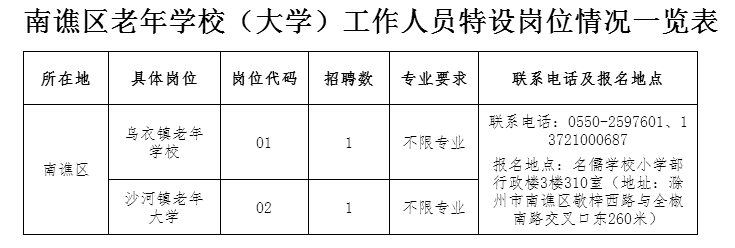 2.南譙區(qū)老年學校(大學)工作人員特設崗位情況一覽表