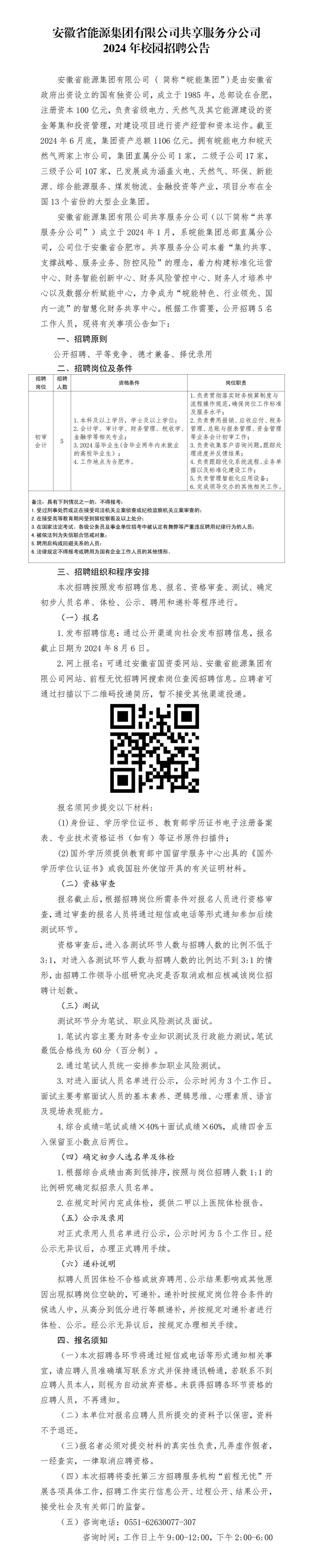 2024年安徽省能源集團(tuán)有限公司共享服務(wù)分公司校園招聘公告