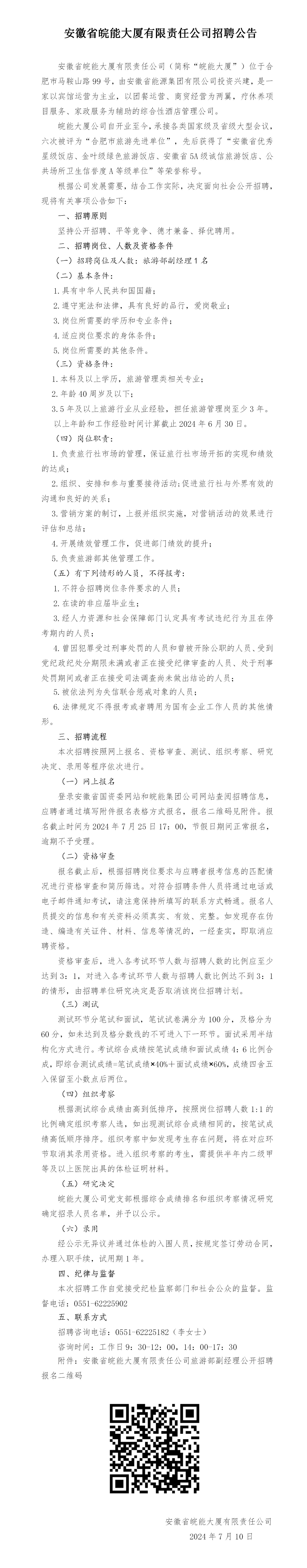 2024年安徽省皖能大廈有限責(zé)任公司招聘公告