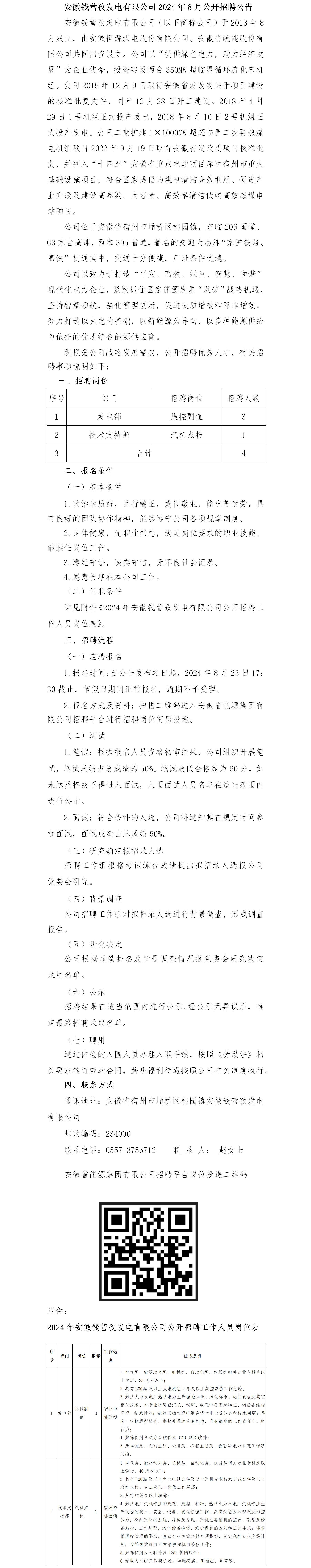 2024年宿州安徽錢營孜發(fā)電有限公司開招聘公告