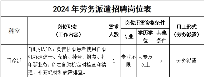 為進(jìn)一步提升服務(wù)質(zhì)量,滿足工作開展需求,安徽省公共衛(wèi)生臨床中心現(xiàn)委托安徽中徽人力資源集團(tuán)有限公司面向社會(huì)招聘以下工作崗位,現(xiàn)具體招聘條件及崗位情況如下: