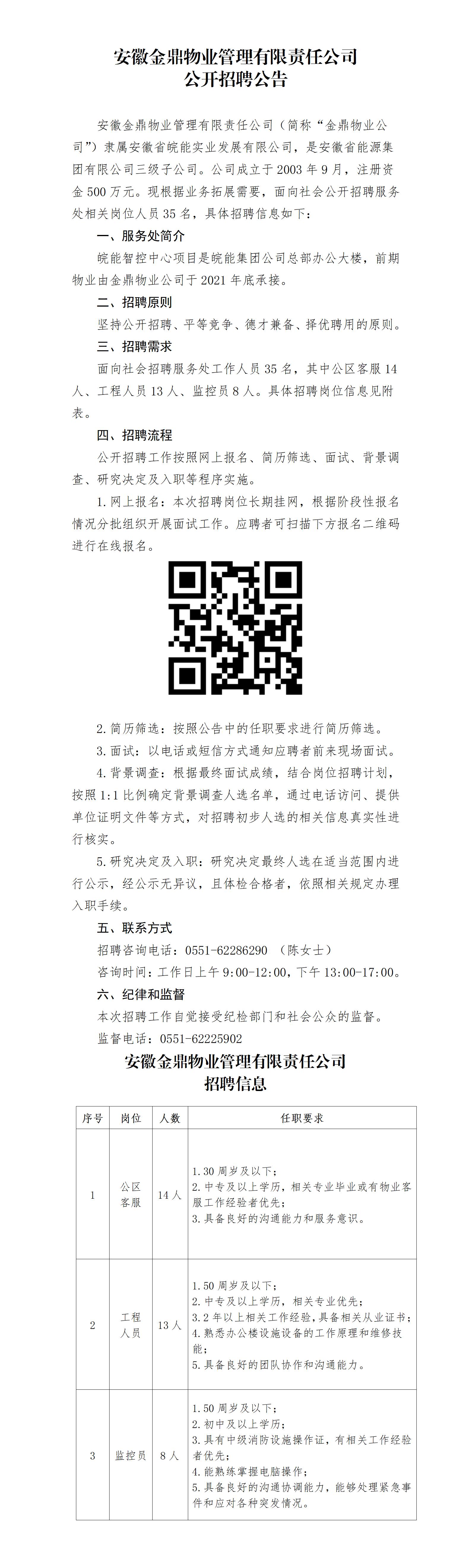 2024年安徽金鼎物業(yè)管理有限責任公司公開招聘公告