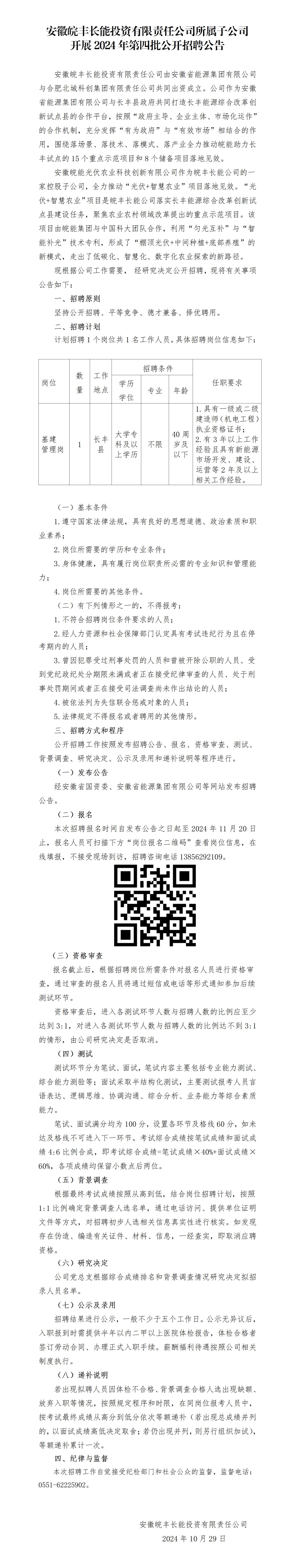 2024年安徽皖豐長能投資有限責(zé)任公司所屬子公司開展第四批公開招聘公告