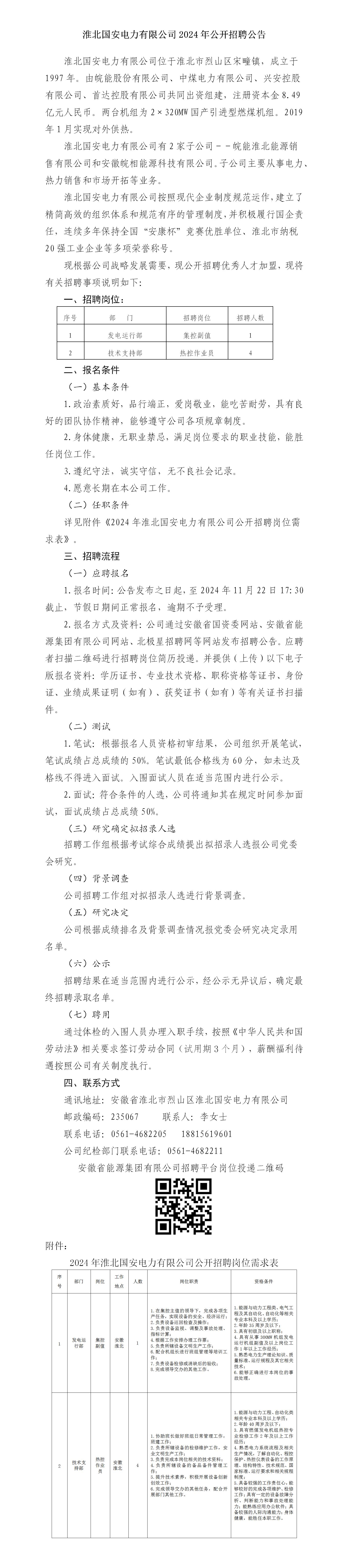 淮北國安電力有限公司有2家子公司--皖能淮北能源銷售有限公司和安徽皖相能源科技有限公司。子公司主要從事電力、熱力銷售和市場開拓等業(yè)務(wù)。