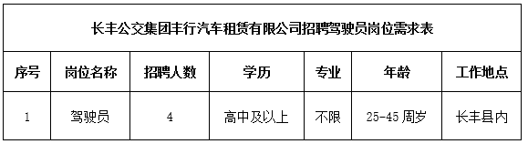 4、長(zhǎng)豐縣豐行汽車租賃有限公司對(duì)本次招聘享有最終解釋權(quán);