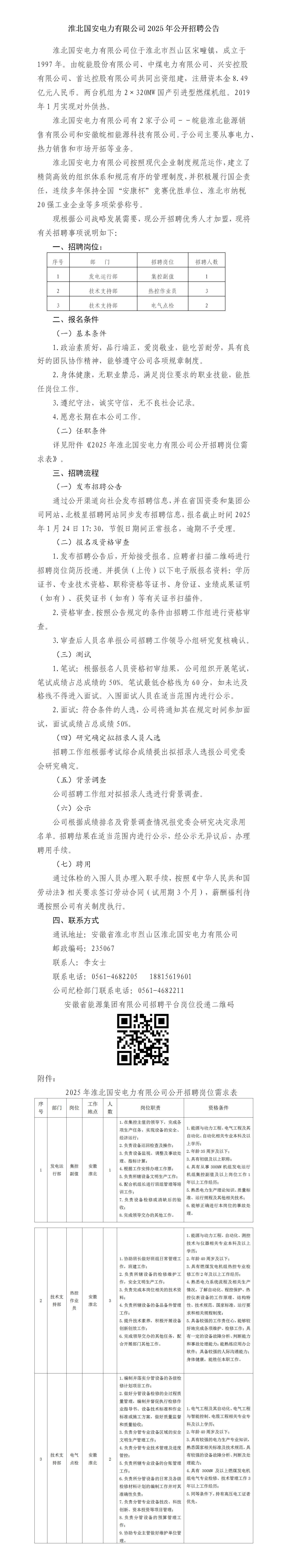 2025年淮北國安電力有限公司公開招聘公告