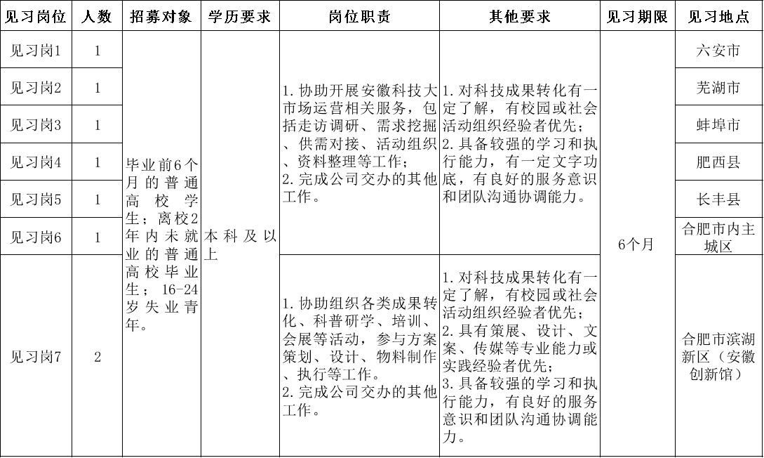 因工作需要,經安徽科技大市場建設運營有限責任公司研究決定,委托安徽皖信人力資源管理有限公司公開招募8名見習人員?,F(xiàn)就有關事項公告如下: