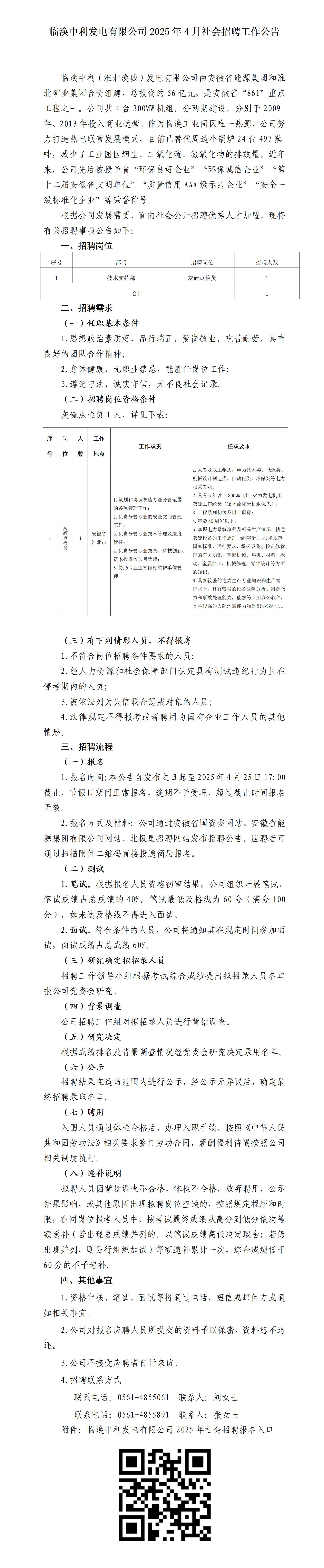 2025年淮北臨渙中利發(fā)電有限公司社會(huì)招聘工作公告
