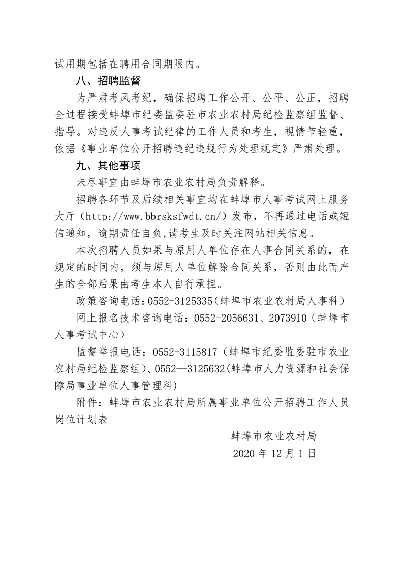 監(jiān)督舉報電話:0552-3115817(蚌埠市紀委監(jiān)委駐市農(nóng)業(yè)農(nóng)村局紀檢監(jiān)察組)、0552—3125632(蚌埠市人力資源和社會保障局事業(yè)單位人事管理科)