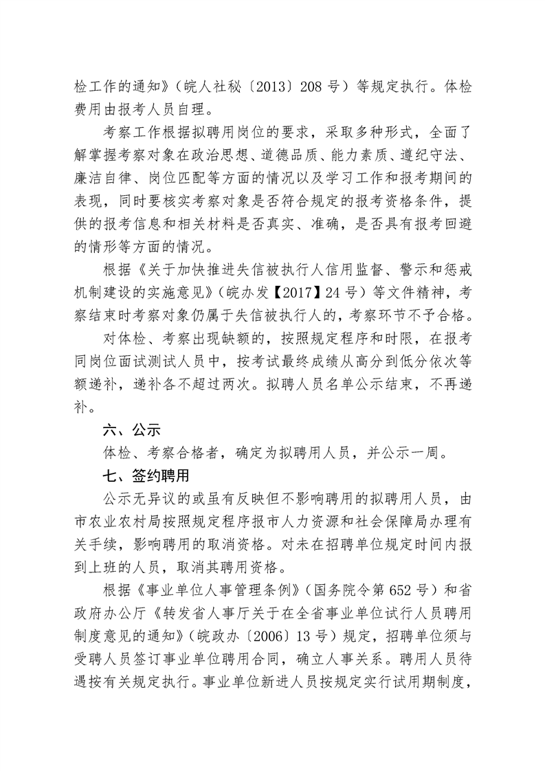 公示無異議的或雖有反映但不影響聘用的擬聘用人員,由市農(nóng)業(yè)農(nóng)村局按照規(guī)定程序報市人力資源和社會保障局辦理有關(guān)手續(xù),影響聘用的取消資格。對未在招聘單位規(guī)定時間內(nèi)報到上班的人員,取消其聘用資格。