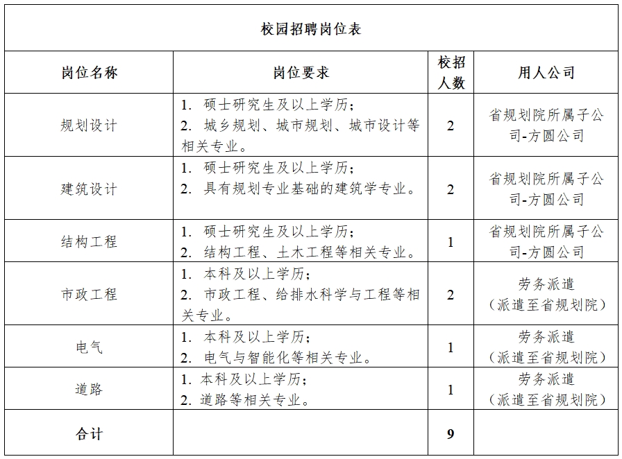2.應(yīng)聘條件:詳見附件《安徽省城鄉(xiāng)規(guī)劃設(shè)計(jì)研究院有限公司及所屬方圓公司2025年度第一次社會、校園公開招聘崗位表》。