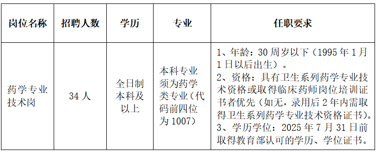 2、資格:具有衛(wèi)生系列藥學(xué)專業(yè)技術(shù)資格或取得臨床藥師崗位培訓(xùn)證書(shū)者優(yōu)先(如無(wú),錄用后2年內(nèi)需取得衛(wèi)生系列藥學(xué)專業(yè)技術(shù)資格證書(shū))。
