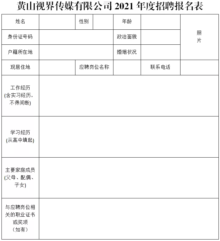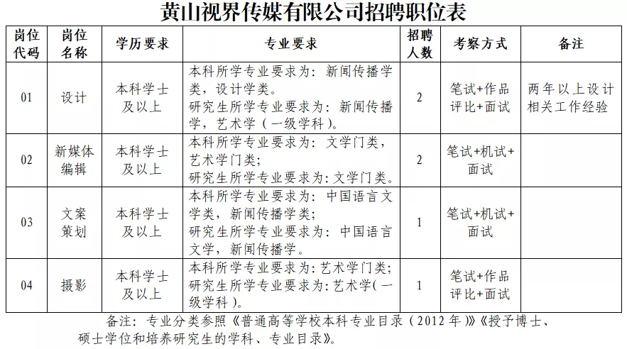黃山視界傳媒有限公司是黃山日?qǐng)?bào)社直屬國(guó)有文化企業(yè)?,F(xiàn)因業(yè)務(wù)發(fā)展需要,面向社會(huì)公開招聘6名工作人員。