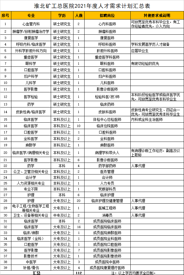 2021年淮北礦工總醫(yī)院人才招聘計(jì)劃(2021年2月修訂)