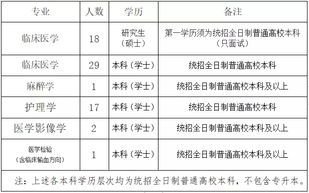 (3)臨床醫(yī)學(xué)本科畢業(yè)生須為一本院校畢業(yè)生;碩士研究生須是全日制普通高校學(xué)歷,第一起點(diǎn)學(xué)歷要求為國(guó)家統(tǒng)招全日制普通高校本科相應(yīng)專業(yè)或西醫(yī)臨床醫(yī)學(xué)專業(yè)。