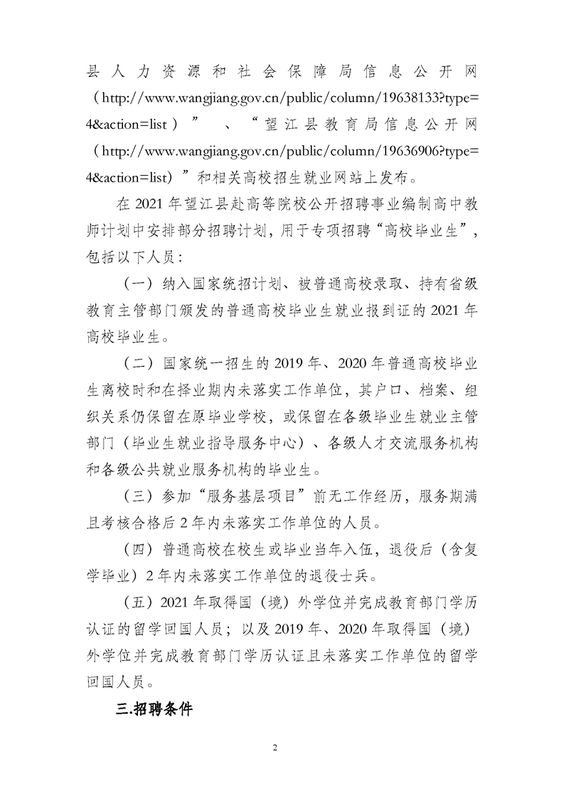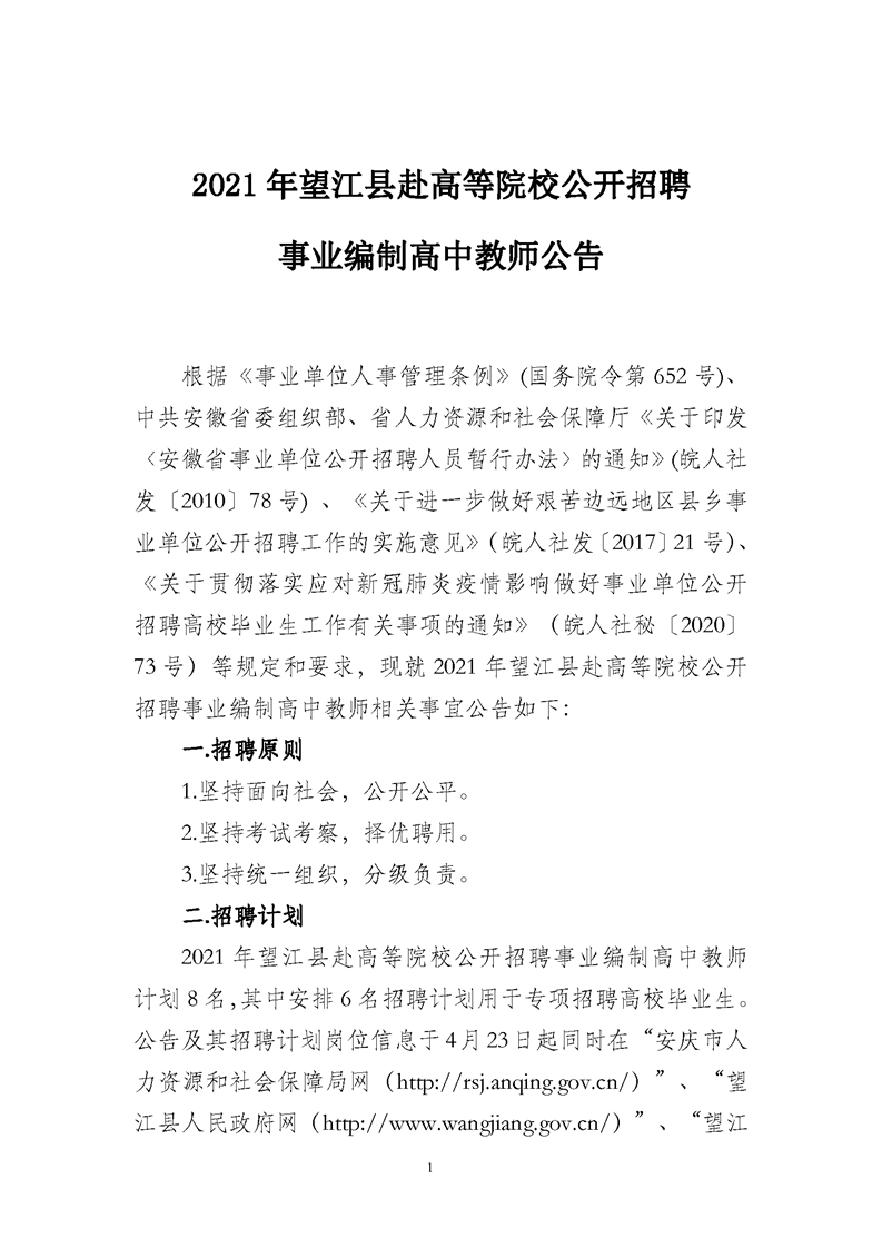 2021年安慶望江縣赴高等院校公開(kāi)招聘事業(yè)編制高中教師公告