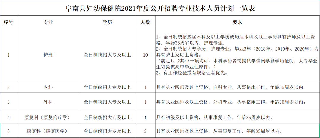 附件:《阜南縣婦幼保健院2021年公開招聘專業(yè)技術(shù)人員計劃一覽表》