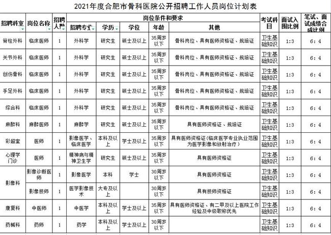 附件1:《2021年度合肥市骨科醫(yī)院公開(kāi)招聘工作人員崗位計(jì)劃表》