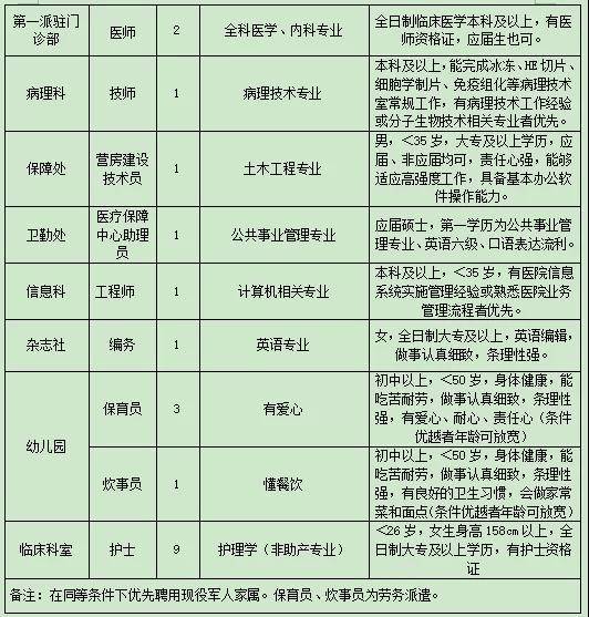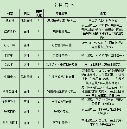 醫(yī)院根據(jù)工作需要,急招醫(yī)療、護(hù)理等部分崗位若干名。(具體見下表)