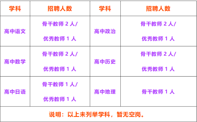以上所有崗位均須大學本科及以上學歷,持有高中教師資格證且專業(yè)對口(研究生學歷者至少要求本科階段專業(yè)對口)。