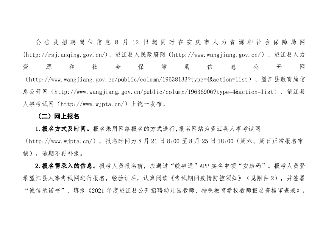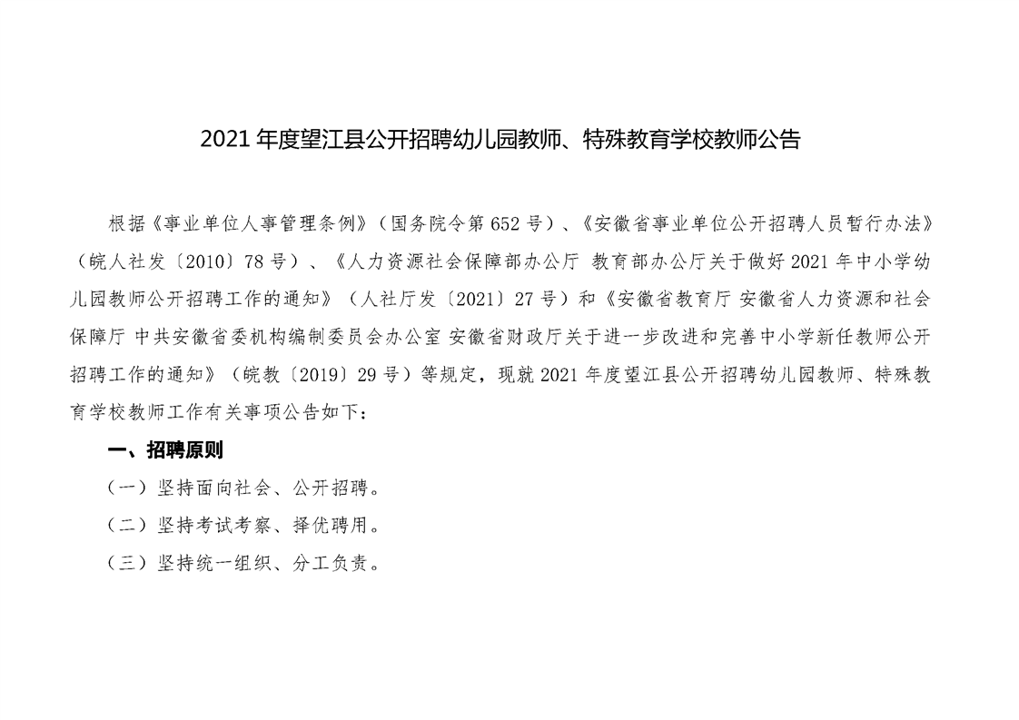 2021年安慶望江縣公開(kāi)招聘幼兒園教師、特殊教育學(xué)校教師公告