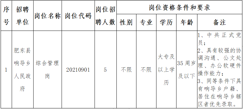 (七)具備省公務(wù)員主管部門和《肥東縣農(nóng)村村級(jí)工作人員管理辦法(試行)》規(guī)定的擬任職位所要求的其他資格條件;