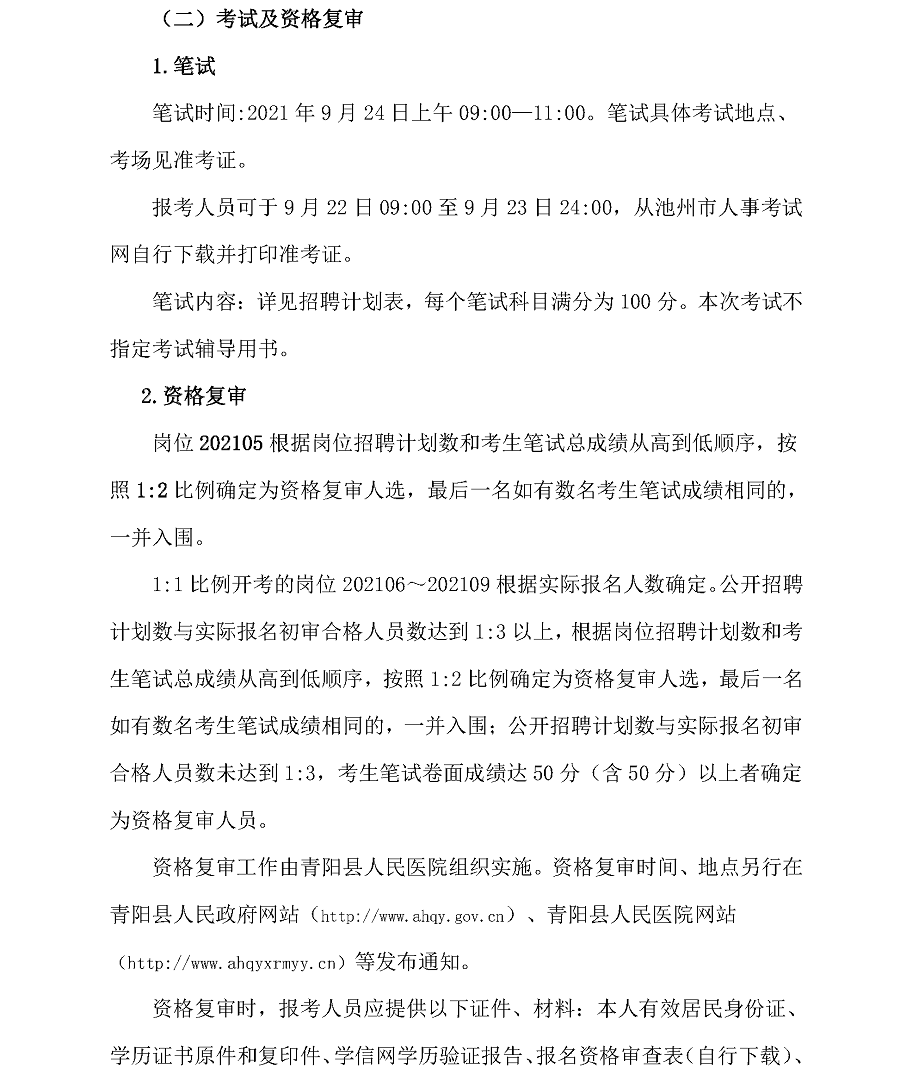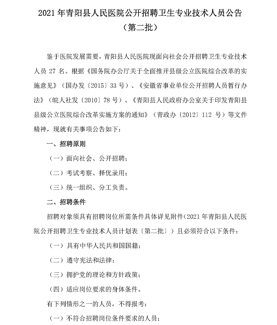 2021年池州青陽(yáng)縣人民醫(yī)院公開招聘衛(wèi)生專業(yè)技術(shù)人員公告(第二批)